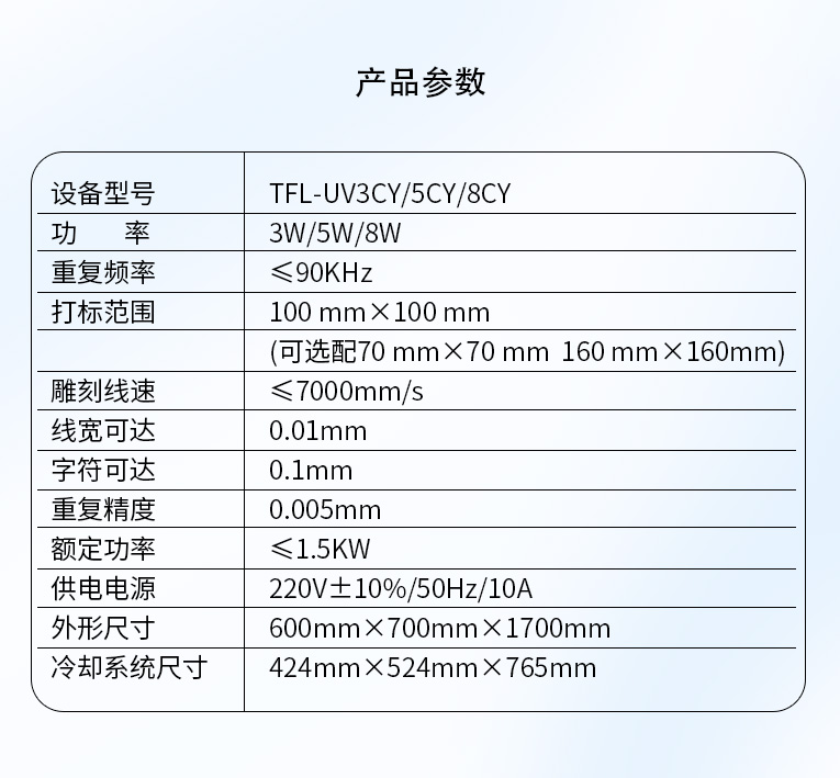 通發紫外激光打標機技術參數: