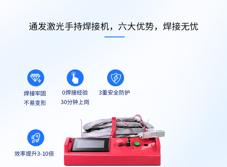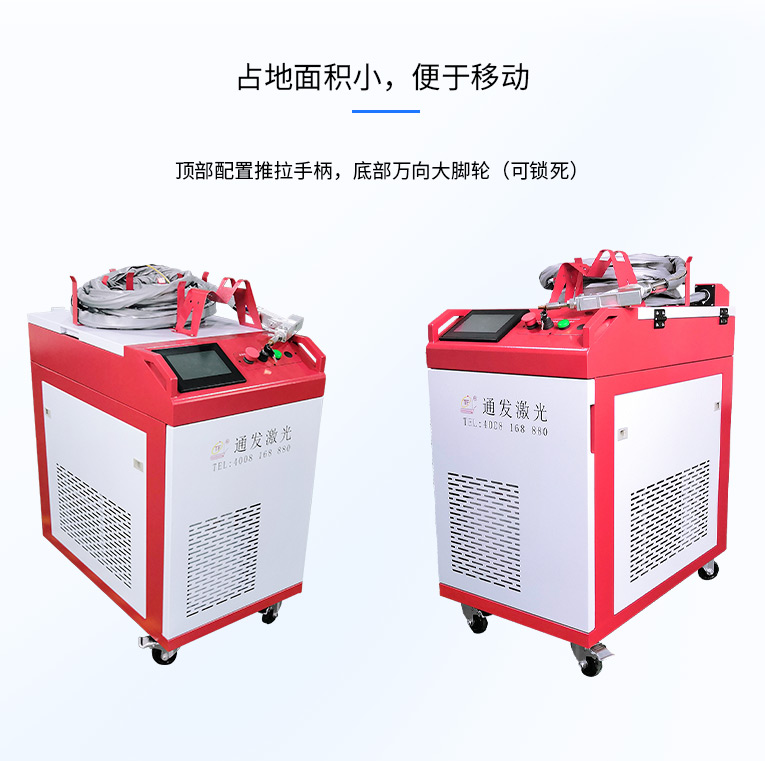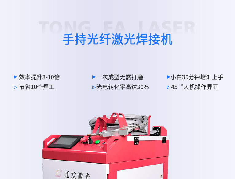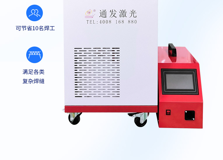 通發(fā)激光一體式手持式激光焊接機(jī),用手持式焊接槍替代以前固定光路,手拿焊接,靈活方便,焊接距離更長(zhǎng),克服工作臺(tái)空間的局限性,工件尺寸不統(tǒng)一時(shí)無法自動(dòng)焊接的情況下使用。主要針對(duì)大型工件、固定位置如內(nèi)直角、外直角、平面焊縫焊接、焊接時(shí)熱影響區(qū)域小,變形小、而且焊接深度大,焊接牢固。是遠(yuǎn)距離焊接大工件的較為靈活的全新的焊接工藝。