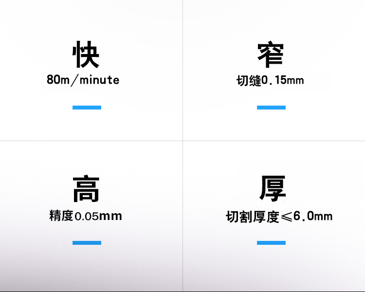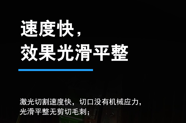 適用范圍廣,可加工銅、鋁、不銹鋼、鐵、pcb板、磁性材料等多鐘材料。幅面大小可選,長(zhǎng)度可根據(jù)用戶加工需求定制。切割速度快,效果光滑平整,切口沒有機(jī)械應(yīng)力,光滑平整無(wú)剪切毛刺。